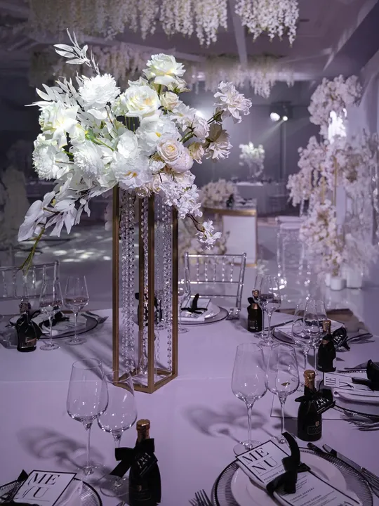 Прозрачные элементы декора отражают свет, наполняя зал сиянием.