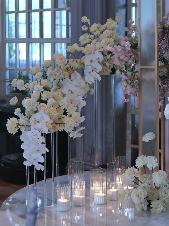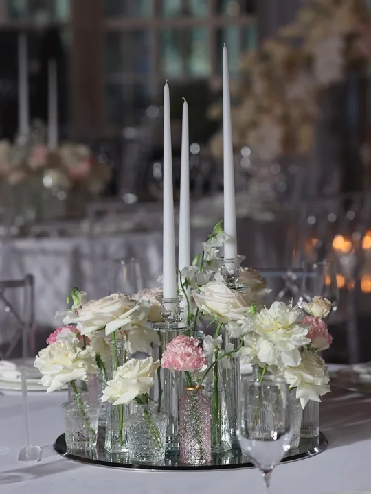 Воздушные цветочные композиции из белых и пудровых оттенков создают атмосферу легкости и романтики.
