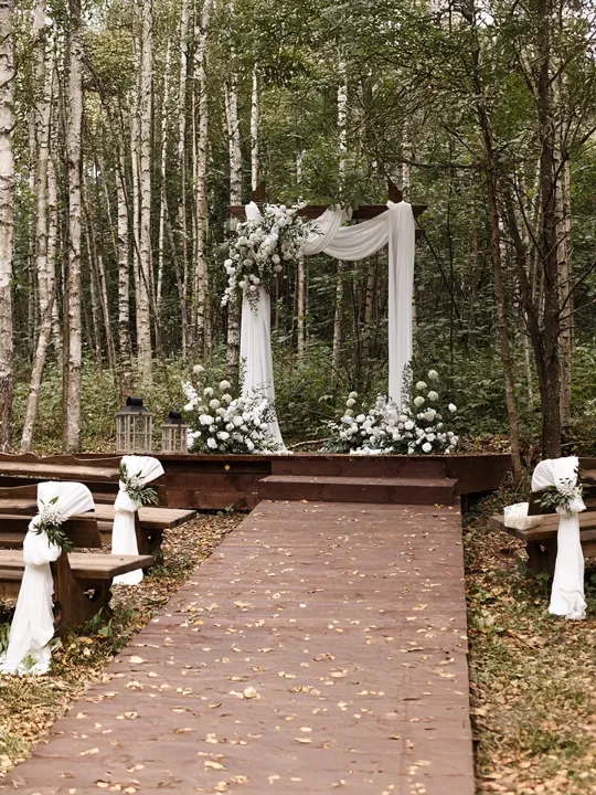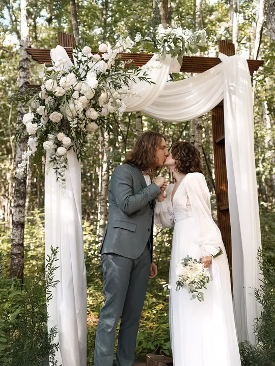 Живописный лес стал идеальным фоном для романтичной церемонии.