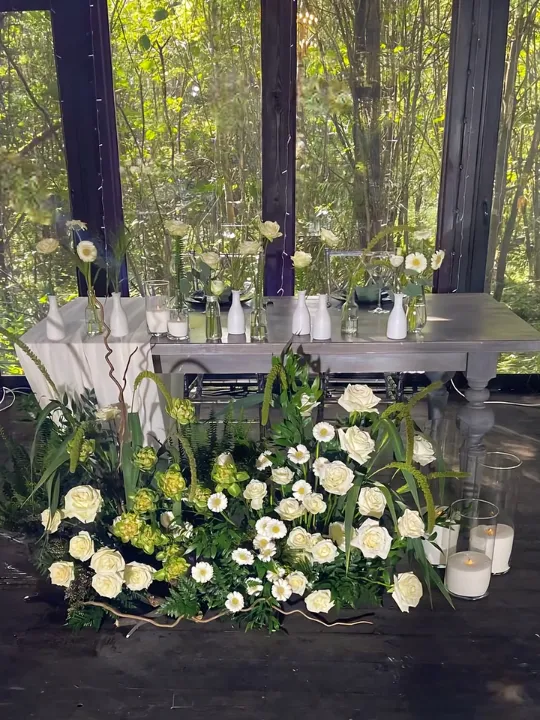 Белые цветы и зелень создают ощущение естественной гармонии.