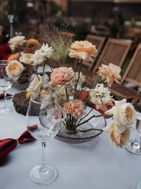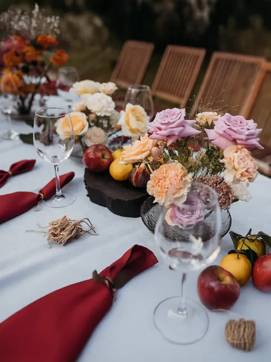 Столы украшены живыми цветами, фруктами и натуральными элементами – как будто сама природа благословляет этот день.